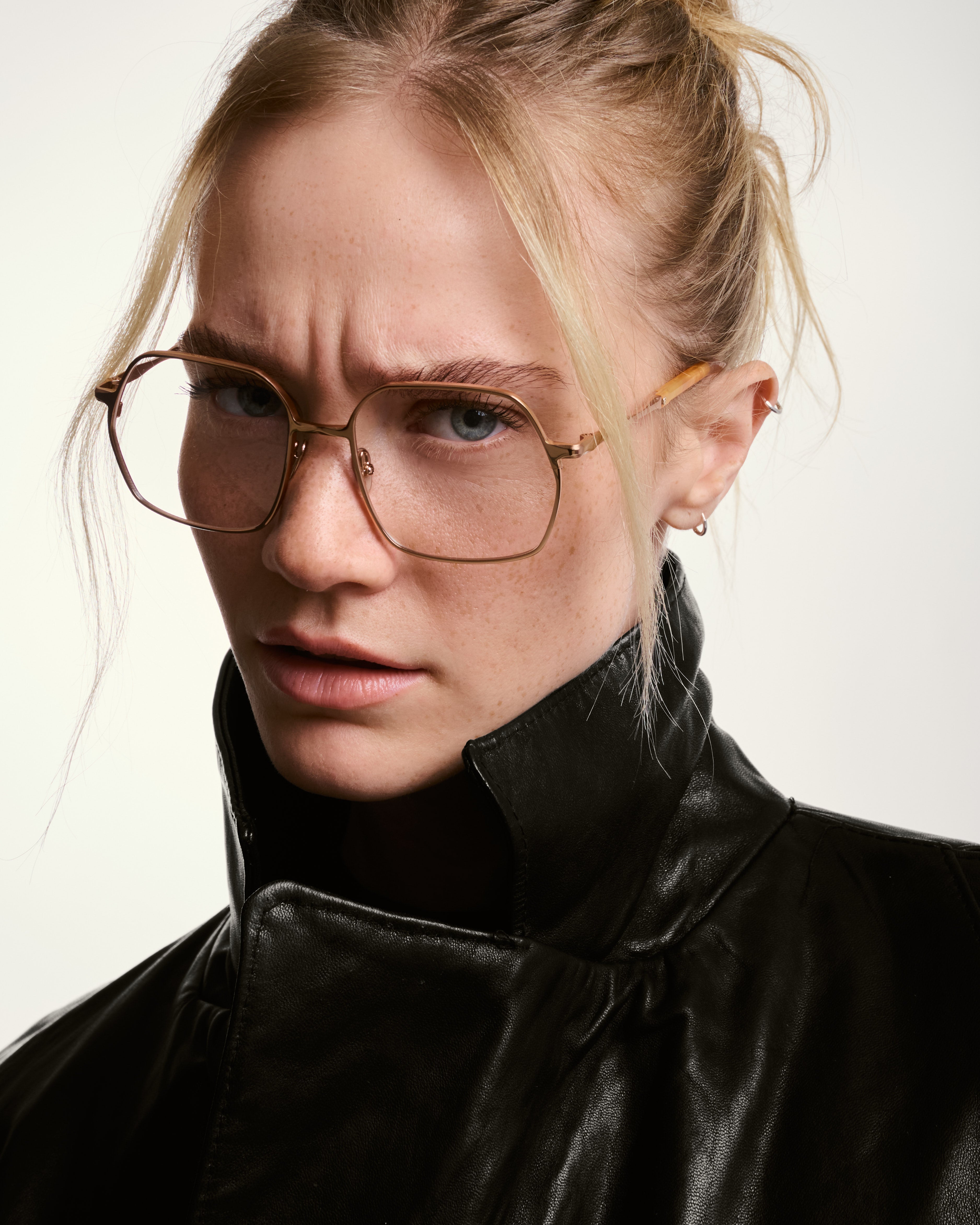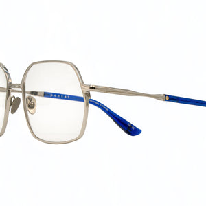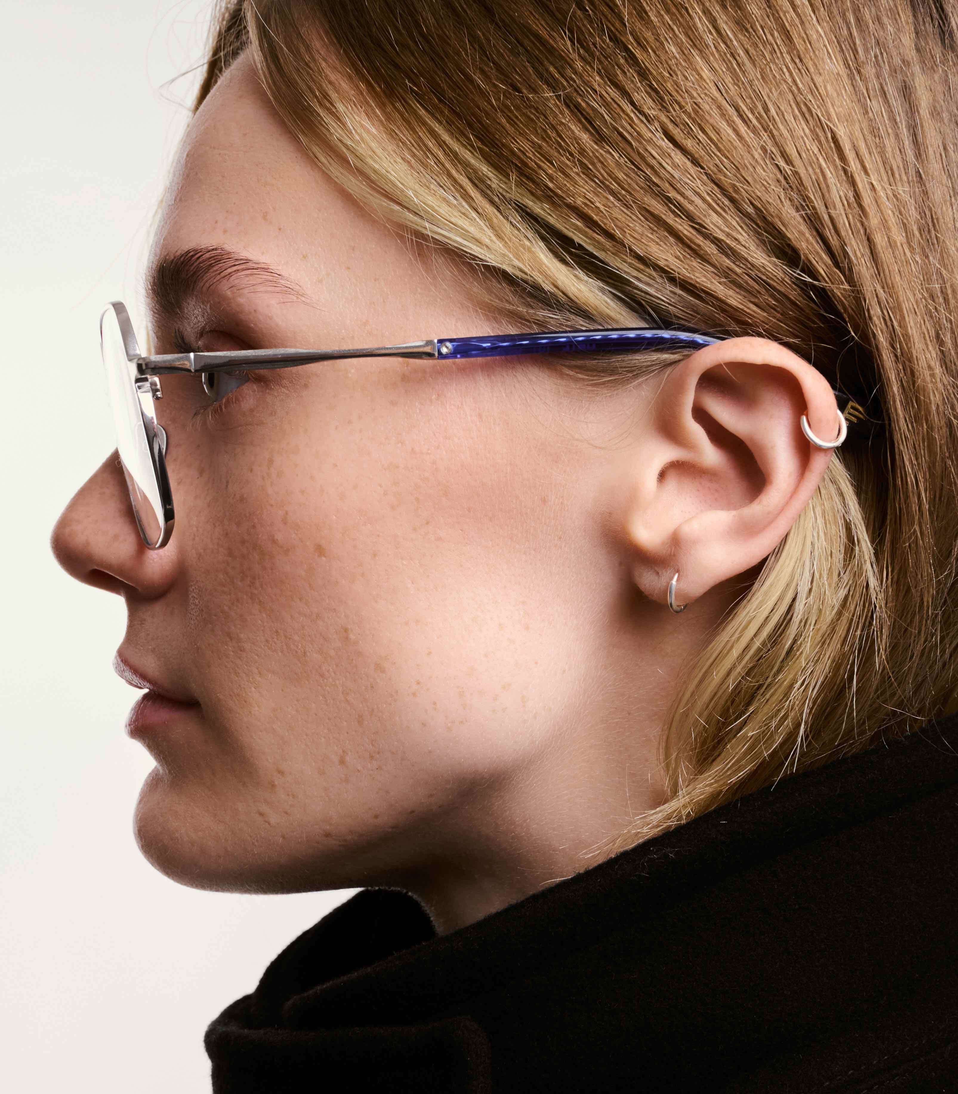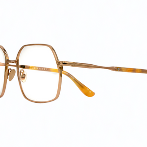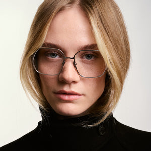 La Gâté s'inscrit dans la tradition des montures métalliques architecturales à cerclage fin, la forme carrée adoucie, les angles légèrement arrondis et les proportions équilibrées offre une compatibilité morphologique étendue. Les branches fines prolongent la logique architecturale de la face, avec une transition soignée vers l'embout acétate.