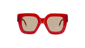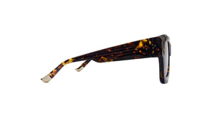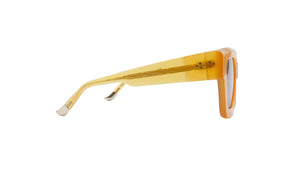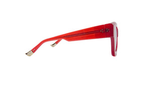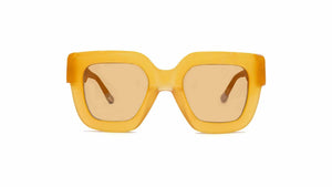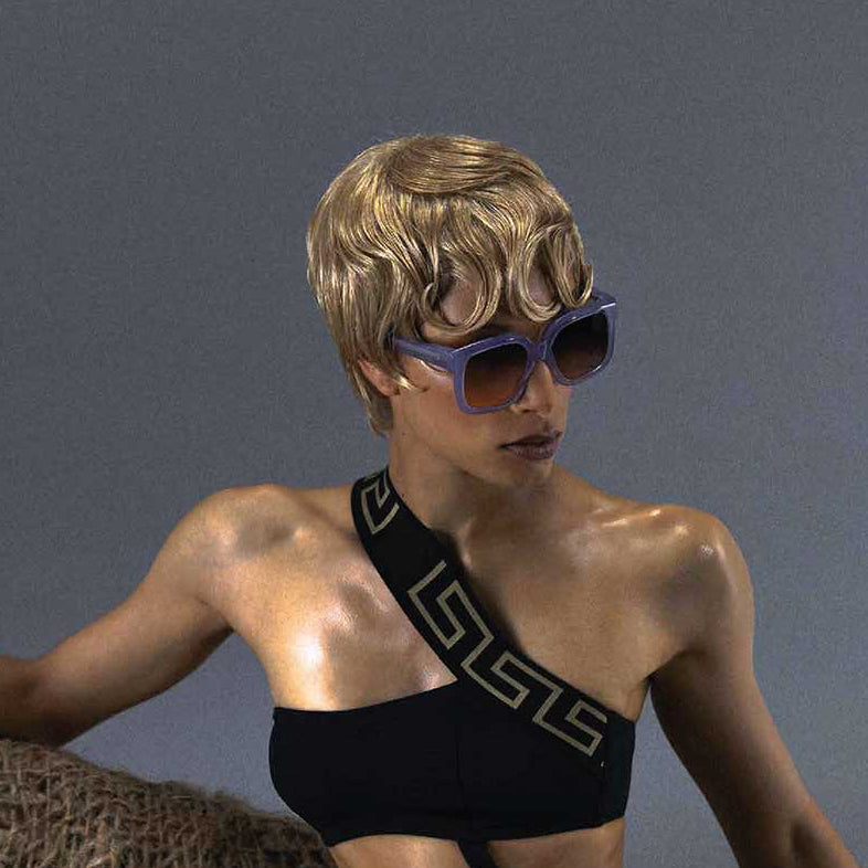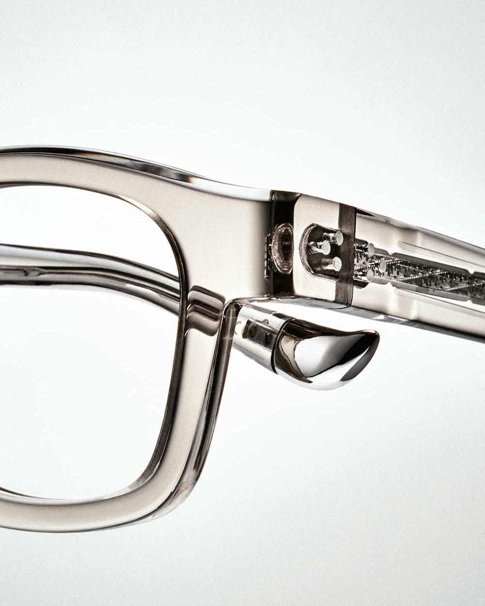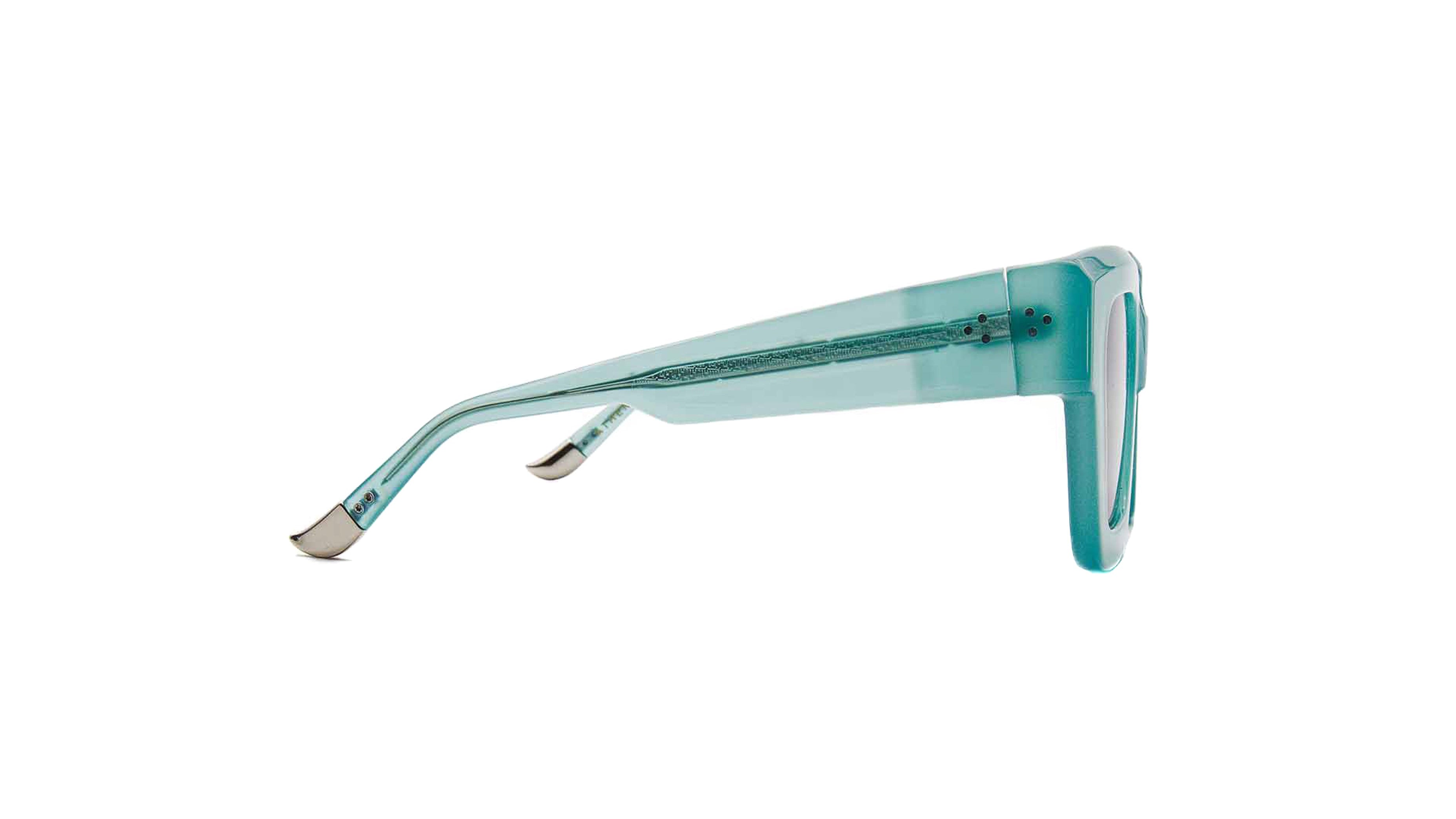 La face en acétate épais a été travaillée sur plan plat, pour offrir un rendu net, frontal, presque statuaire. La largeur de la partie supérieure accentue la ligne des sourcils, créant un effet lift optique. Les angles sont volontairement adoucis sur le bas pour éviter tout effet d’alourdissement. Le pont haut dégagé permet de libérer la ligne du nez et d’assurer un appui précis, sans compression. Derrière sa rigueur géométrique se cache une monture équilibrée, stable, profondément solaire — à l’image de la déesse dont elle porte le nom.