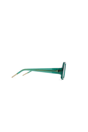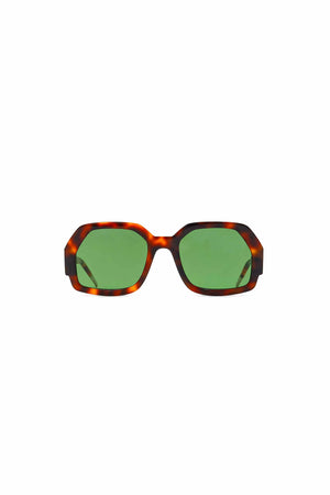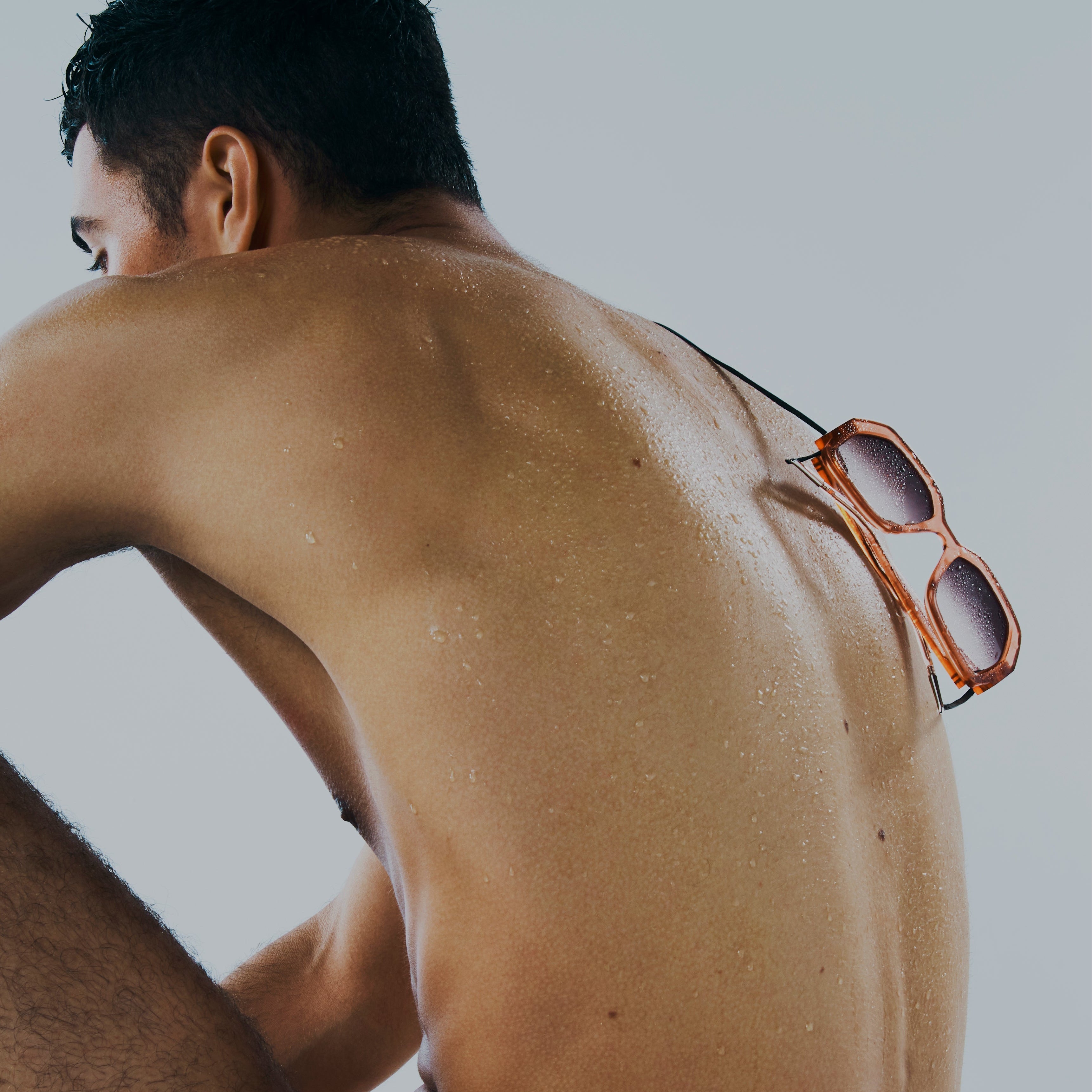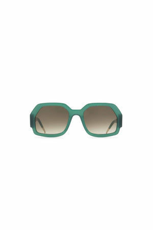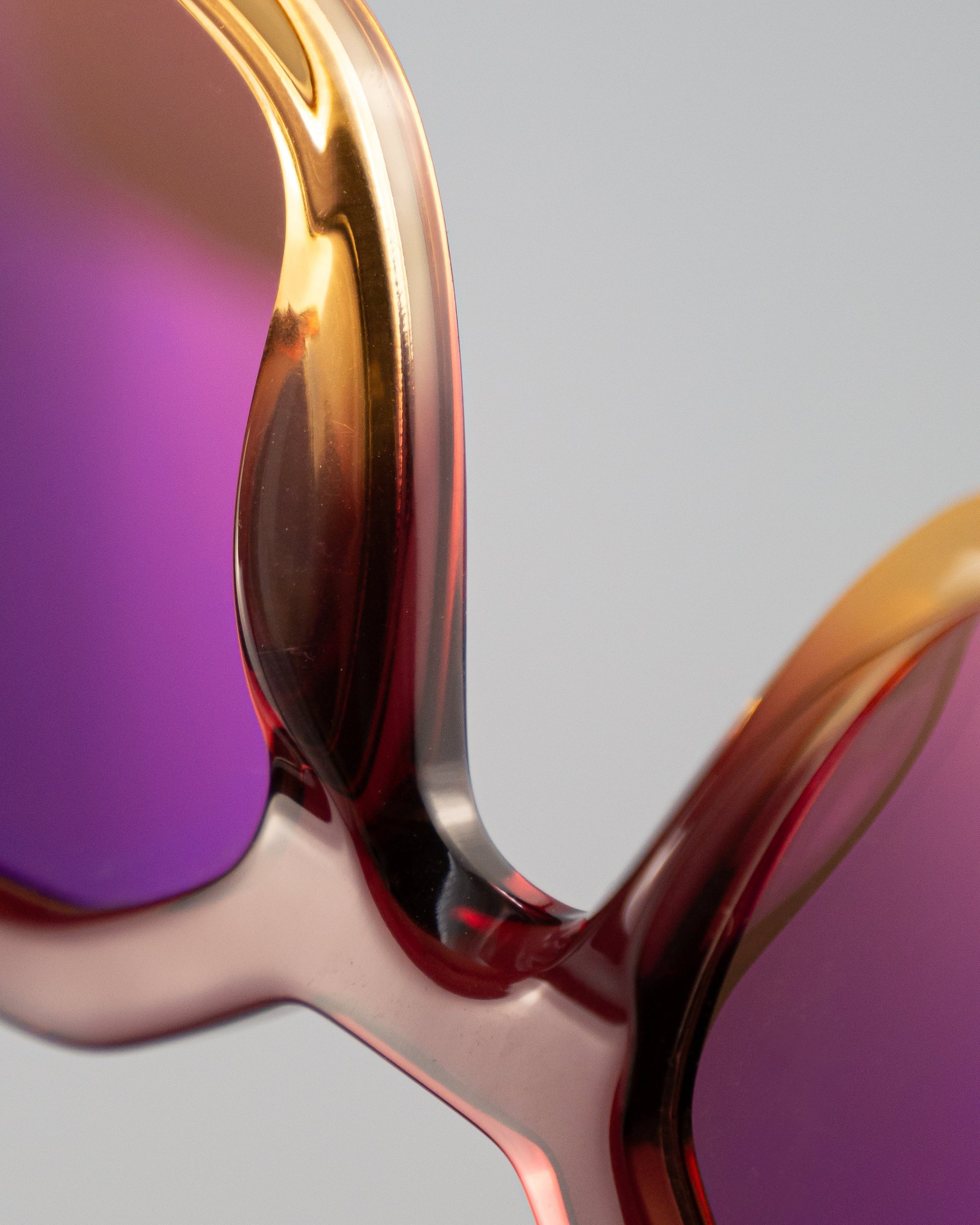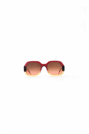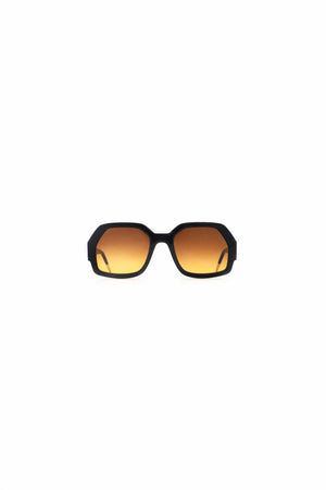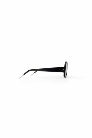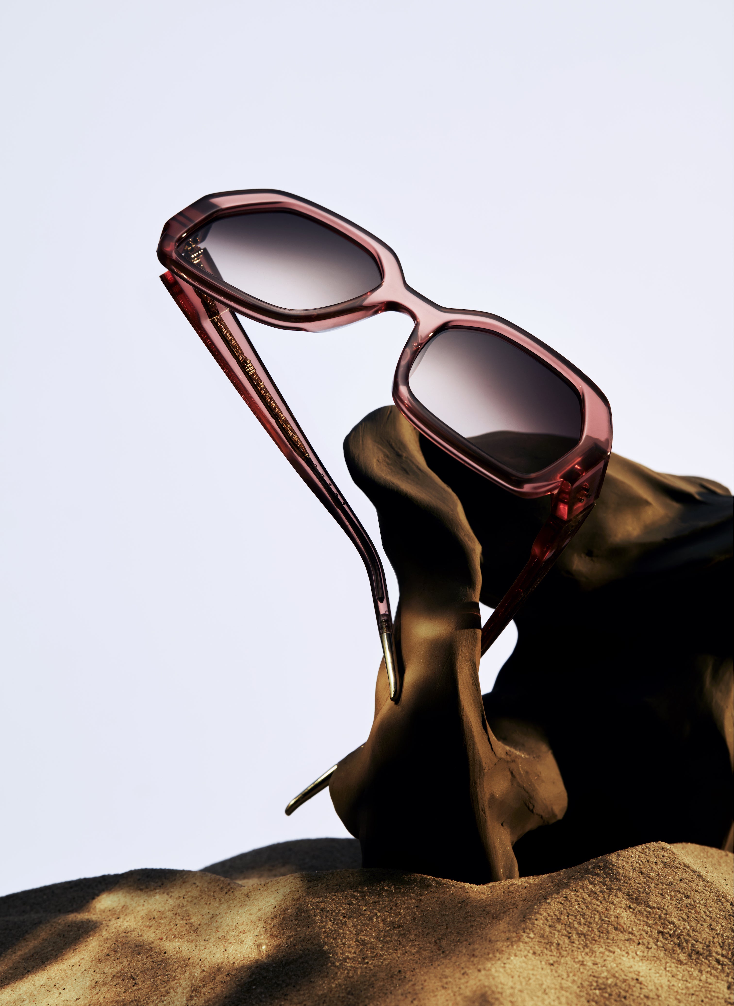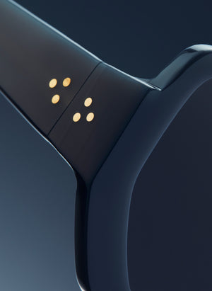 Sa forme octogonale revisite les codes classiques de la solaire pour en faire un objet visuel puissant, presque architectural. La face large offre un bon champ de couverture sans alourdir le visage, grâce à un travail subtil sur les angles et l'épaisseur. Le pont haut équilibre la verticalité du regard, tandis que les branches droites garantissent une tenue stable et continue.