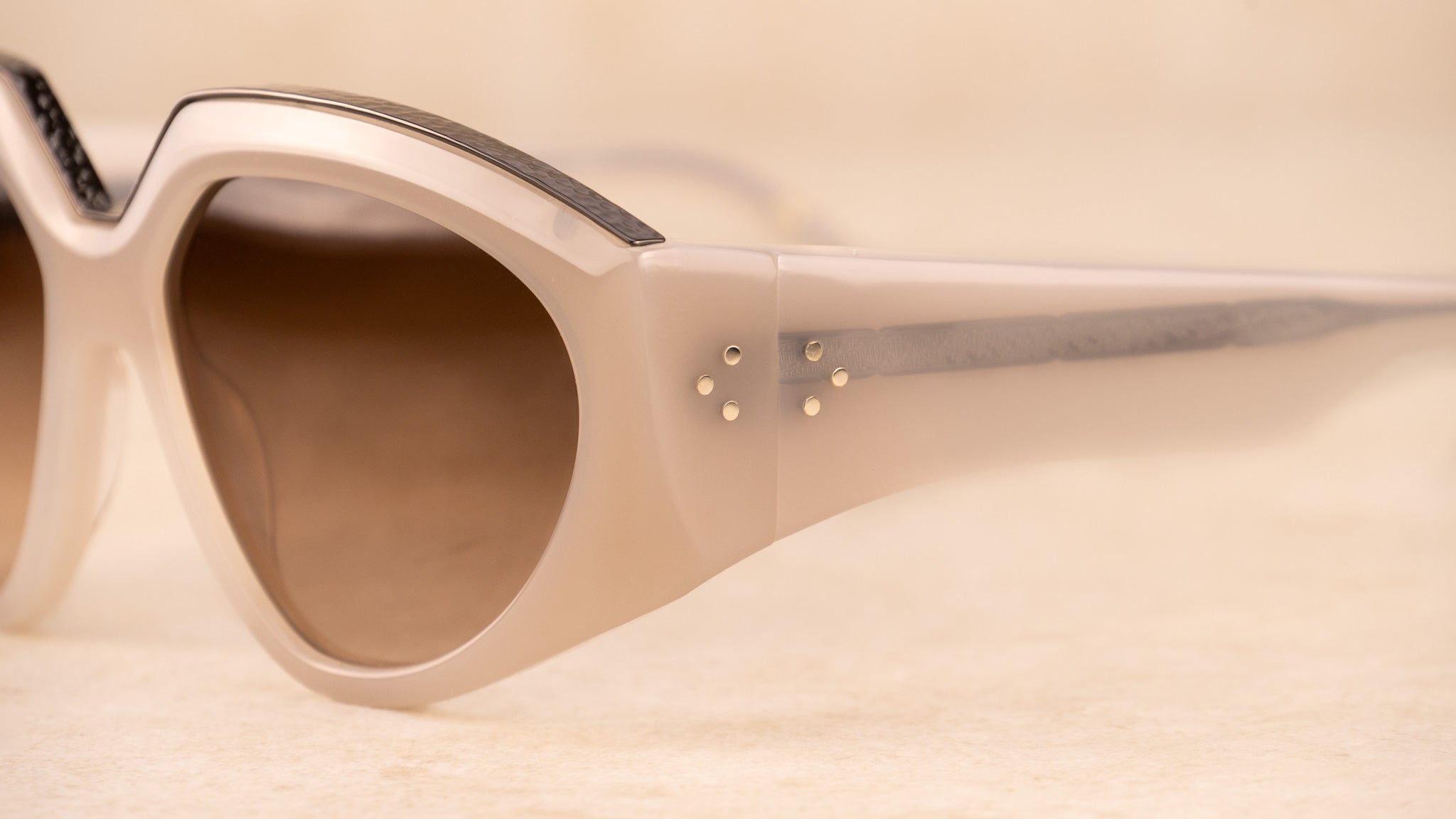 La NAVETTE séduit par son charme et sa silhouette audacieuse et originale. Sa forme papillonnante aux courbes affirmées sublime le regard en lui donnant de la structure et de l’élégance. Conçue en acétate de qualité, elle associe robustesse et confort, idéale pour celles qui recherchent une monture solaire à la fois stylée, moderne et agréable à porter au quotidien.